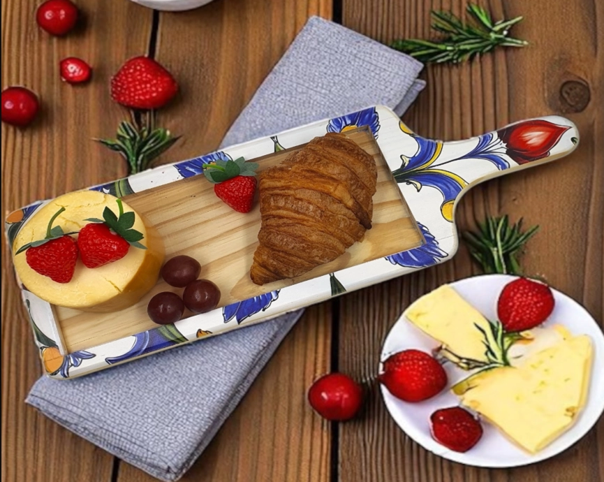 This style in the Iberian Elegance Cheese Platters Collection incorporates elaborate starburst mosaics inspired by Moorish-Spanish artisanship. Its earthy wooden texture adds a warm, authentic touch to your intimate table setting