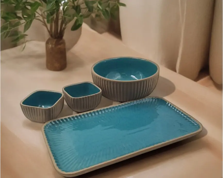 A ceramic dinner set makes your dining cosy, beautiful and worth having! Matte finishes, earthy gradients, and soft patterns make every meal intimate and comforting. Your special ones will love that you thought about their routine and knick-knacks for a lovely table setting!