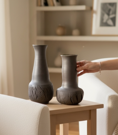 Prepare to be captivated by the new Leafbud x Tripti collection, a stunning embodiment of nature’s quiet contrasts. Inspired by the way sunlight unevenly marks tree bark, this collaboration reveals a profound appreciation for subtle imperfections. Here, no two pieces are ever the same, even within a set. Each vessel is a tactile narrative woven from flame, clay, and pure intention. This collection, aptly named “Emotional Resonance,” invites you to experience pieces that are soulful, imperfect, and truly one-of-a-kind just like the hands that lovingly shaped them.