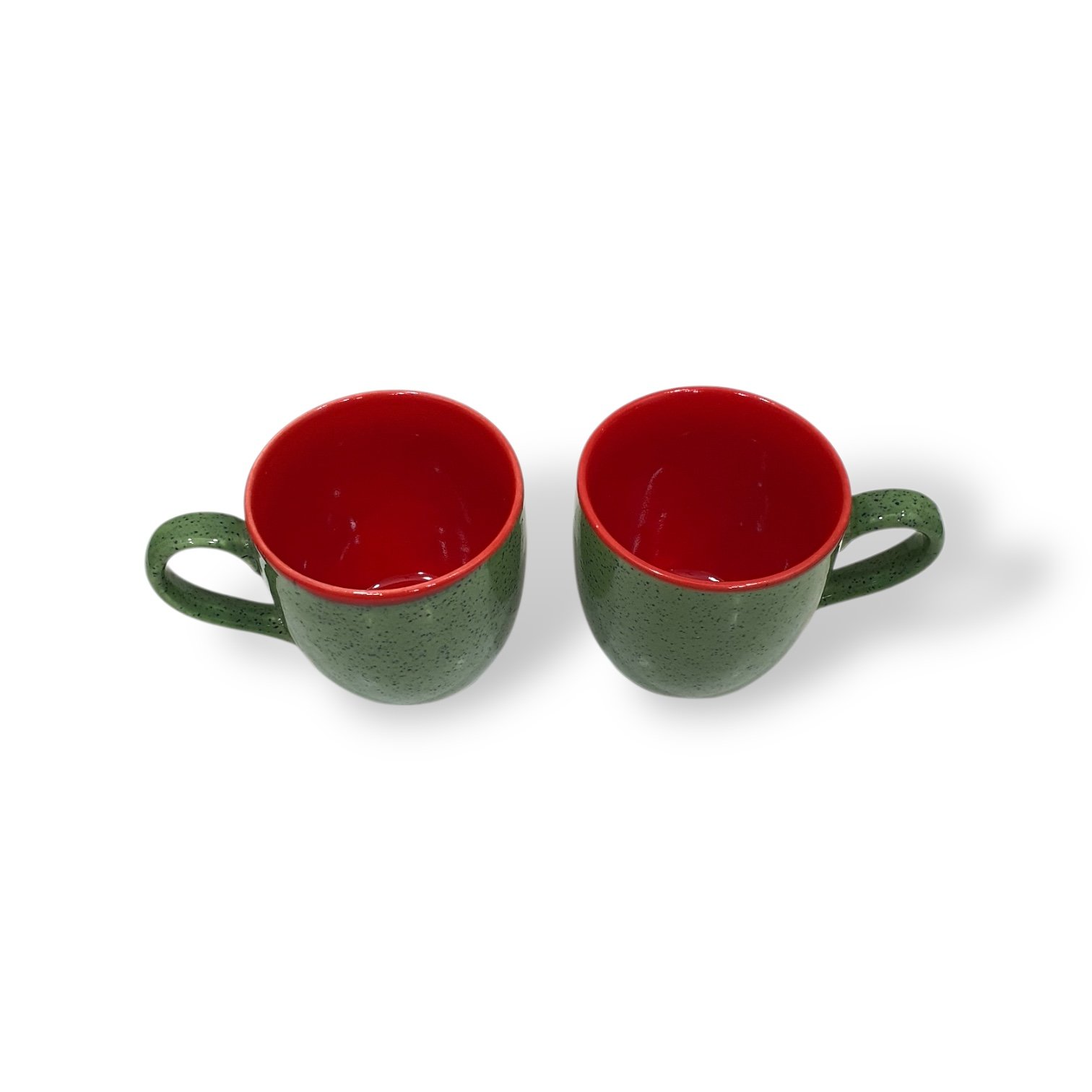 Leafbud Festive Cheer Cups are hand-thrown ceramic pieces featuring a glossy green exterior and deep red glaze inside. Durable, food-safe, and thoughtfully crafted for festive gifting and everyday use.