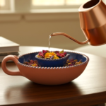 Celebrate the festival season with Leafbud limited-edition Glow Garden Mini Lamp. Handcrafted from rustic terracotta, this lamp holds oil wicks or tea lights at its center, while flower arrangements surround it. Vibrant glazes inside reflect the light, adding a warm glow to your home or perfect for gifting. Add elegance today!
