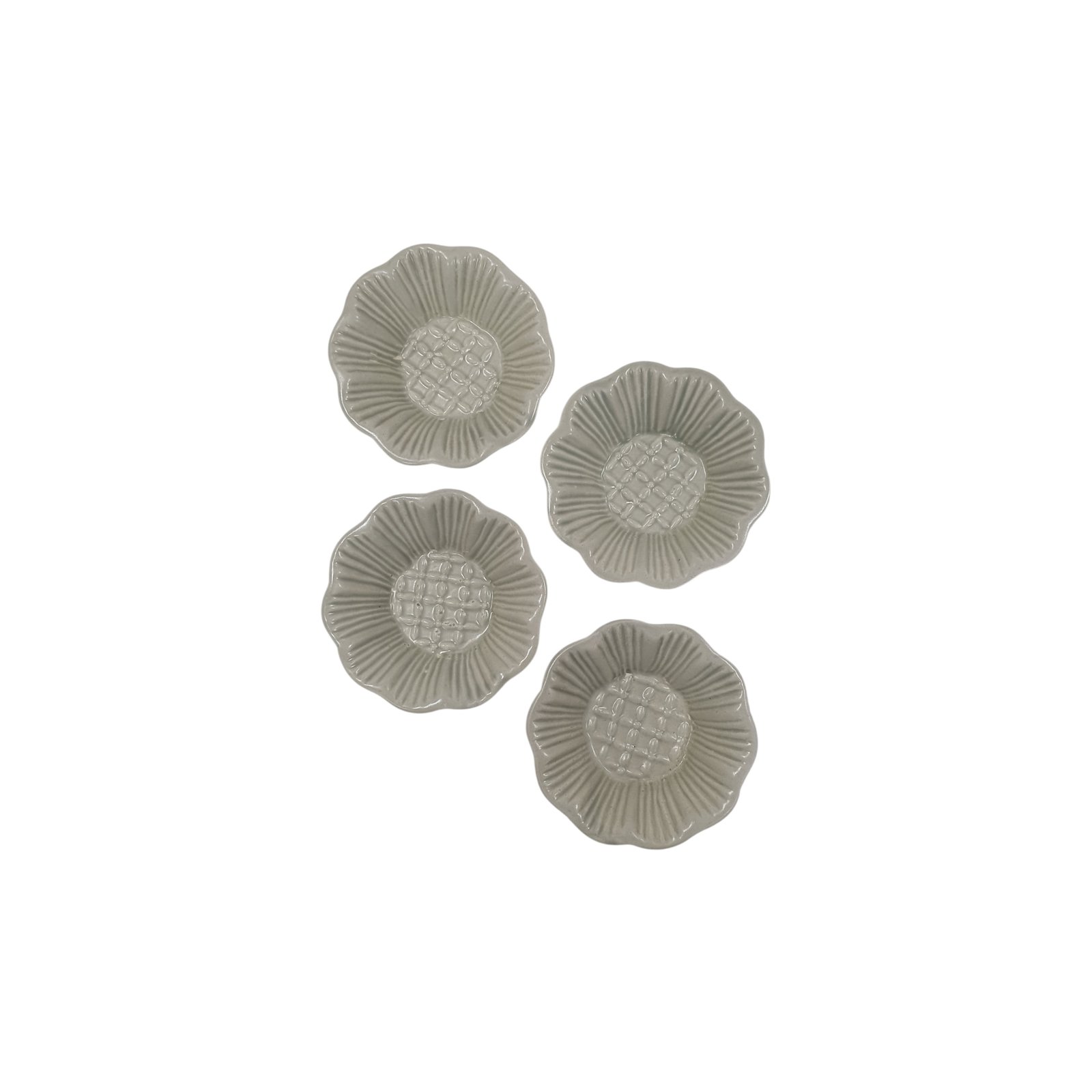 A 4-piece set of off-white, flower-shaped mini bowls with a natural glaze. Ideal for small servings and modern table setups.