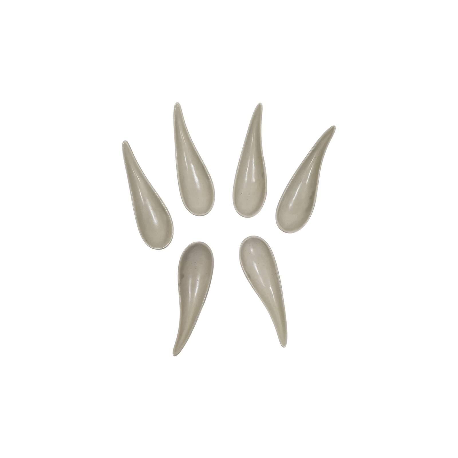 A 6-piece set of off-white stained with natural glaze canapé plates with a natural glaze. Ideal for serving bite-sized hors d’oeuvres at hosting events or grazing tables.