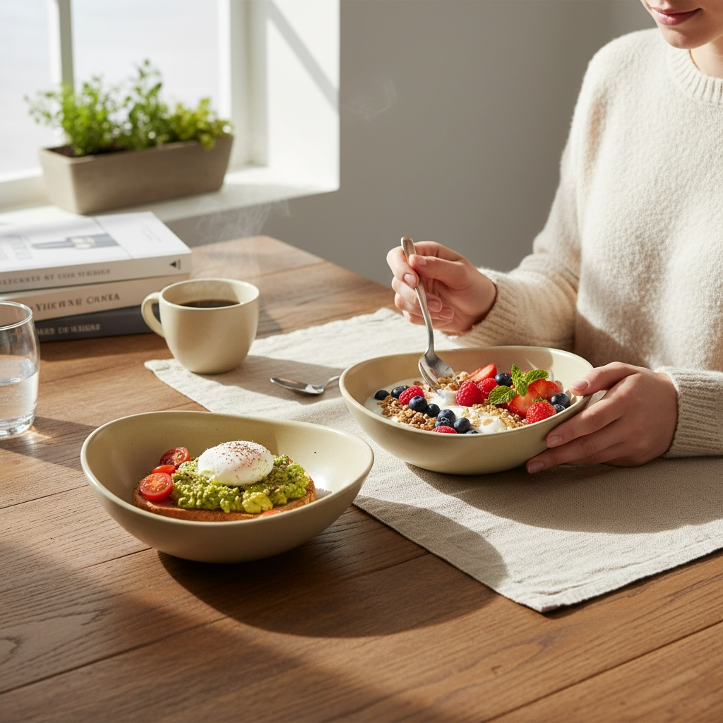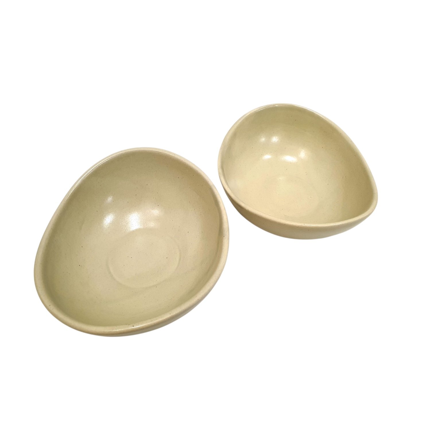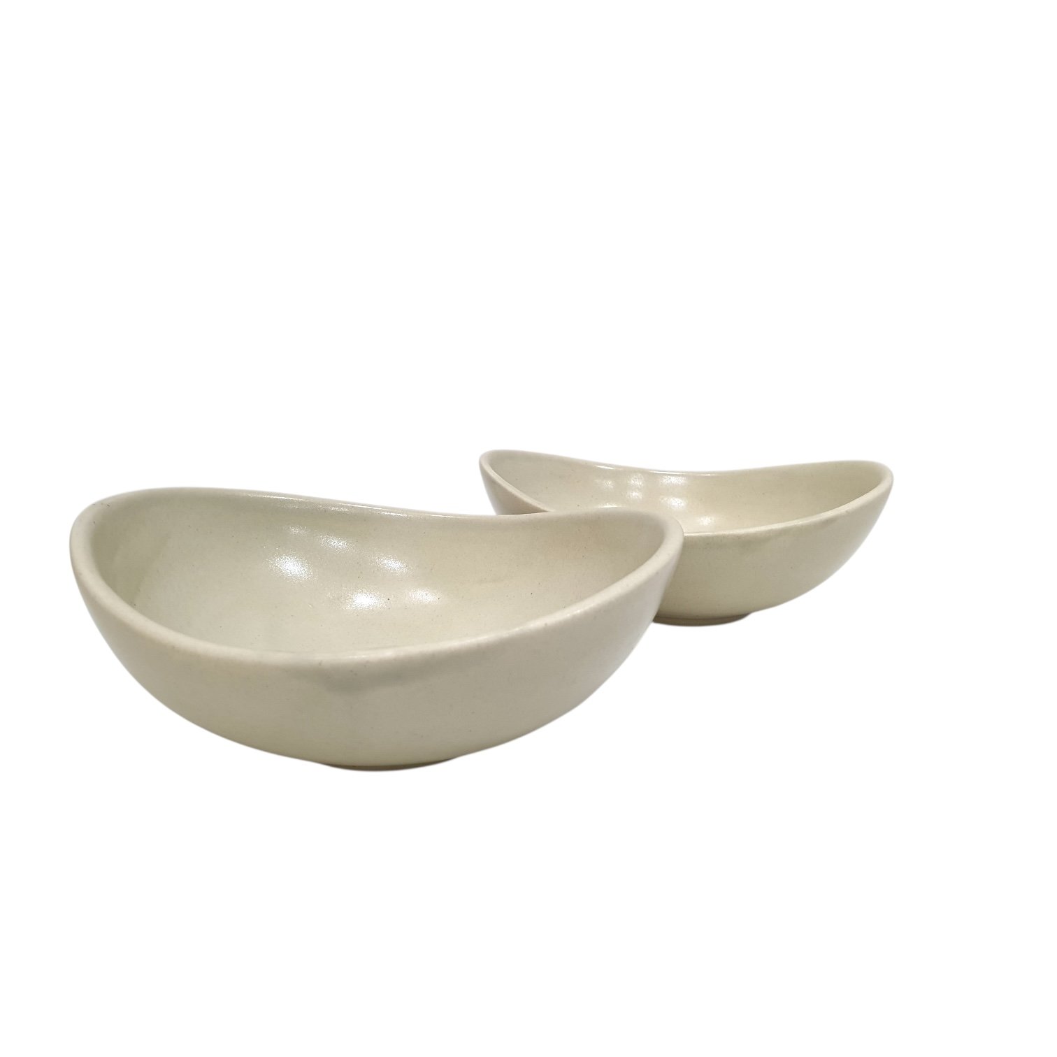 Set the table for sharing with the Ivory Couplet Serving Set, where soft pale glaze and mirrored curves cradle snacks, sabzis, and salads in quietly intentional warmth.