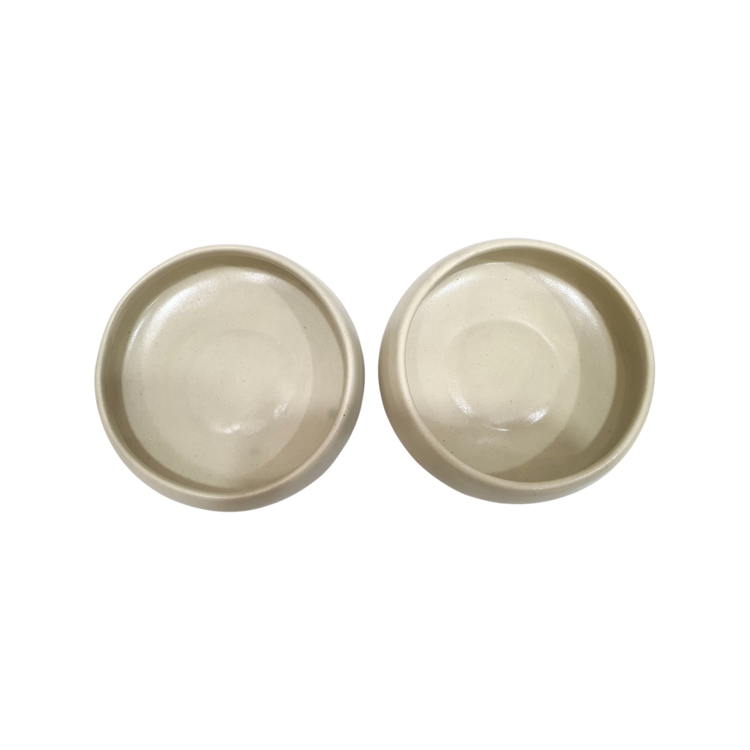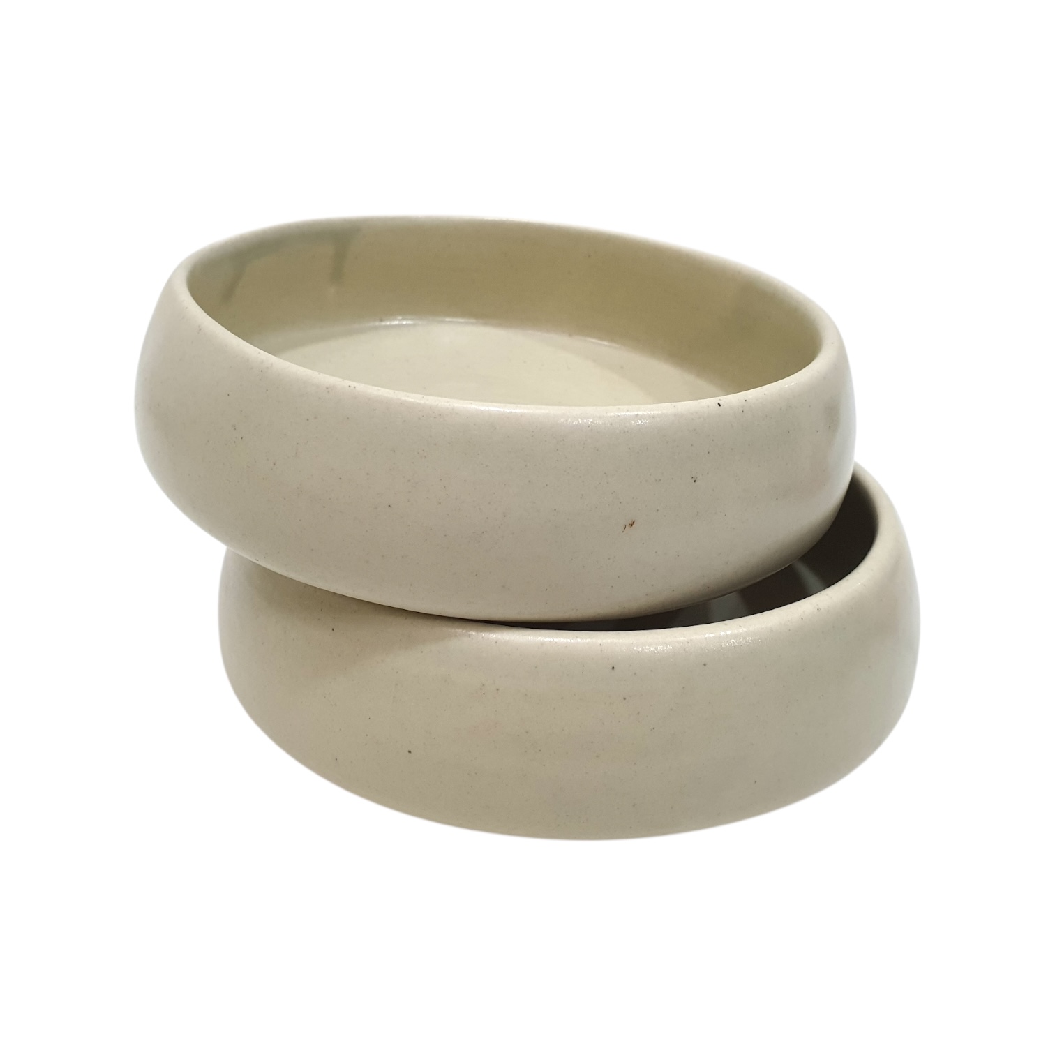 Set out the Ivory Stroke Serving Duo when loved ones gather; pale ivory pools and gentle glaze strokes make every shared salad, snack, and sabzi feel quietly thoughtful.
