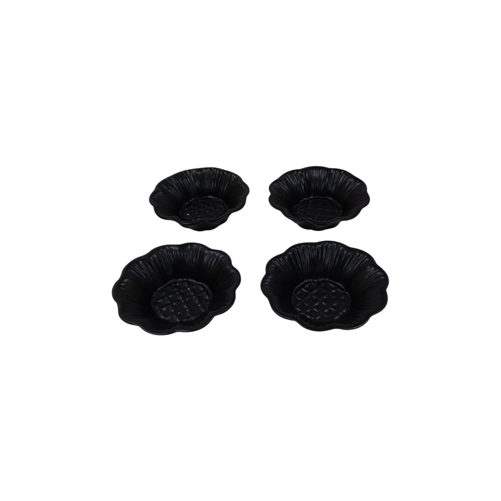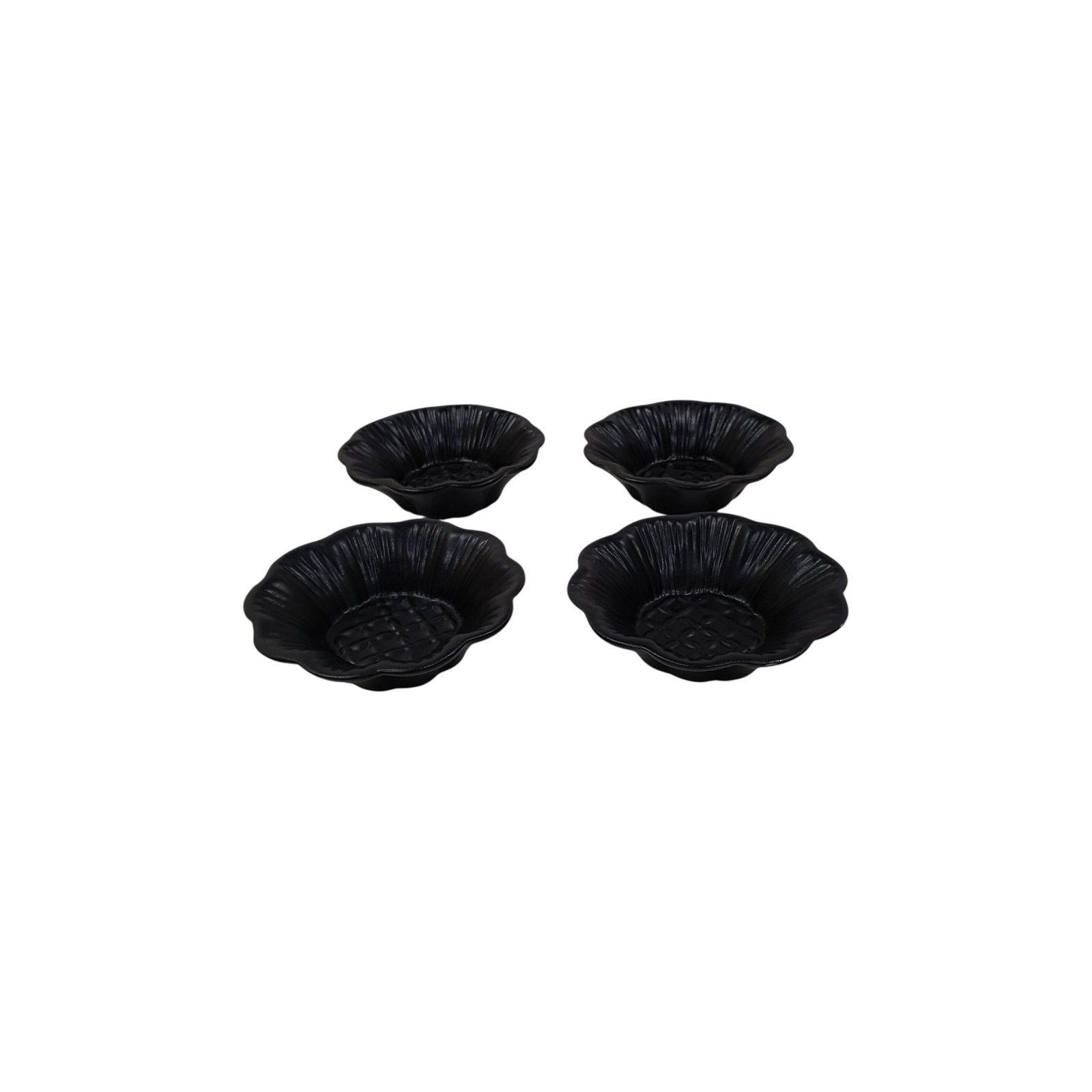 A 4-piece set of matte black handcrafted mini bowls inspired by floral forms. Perfect for individual servings of dips, nibbles, or desserts.