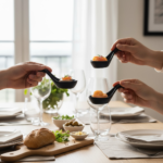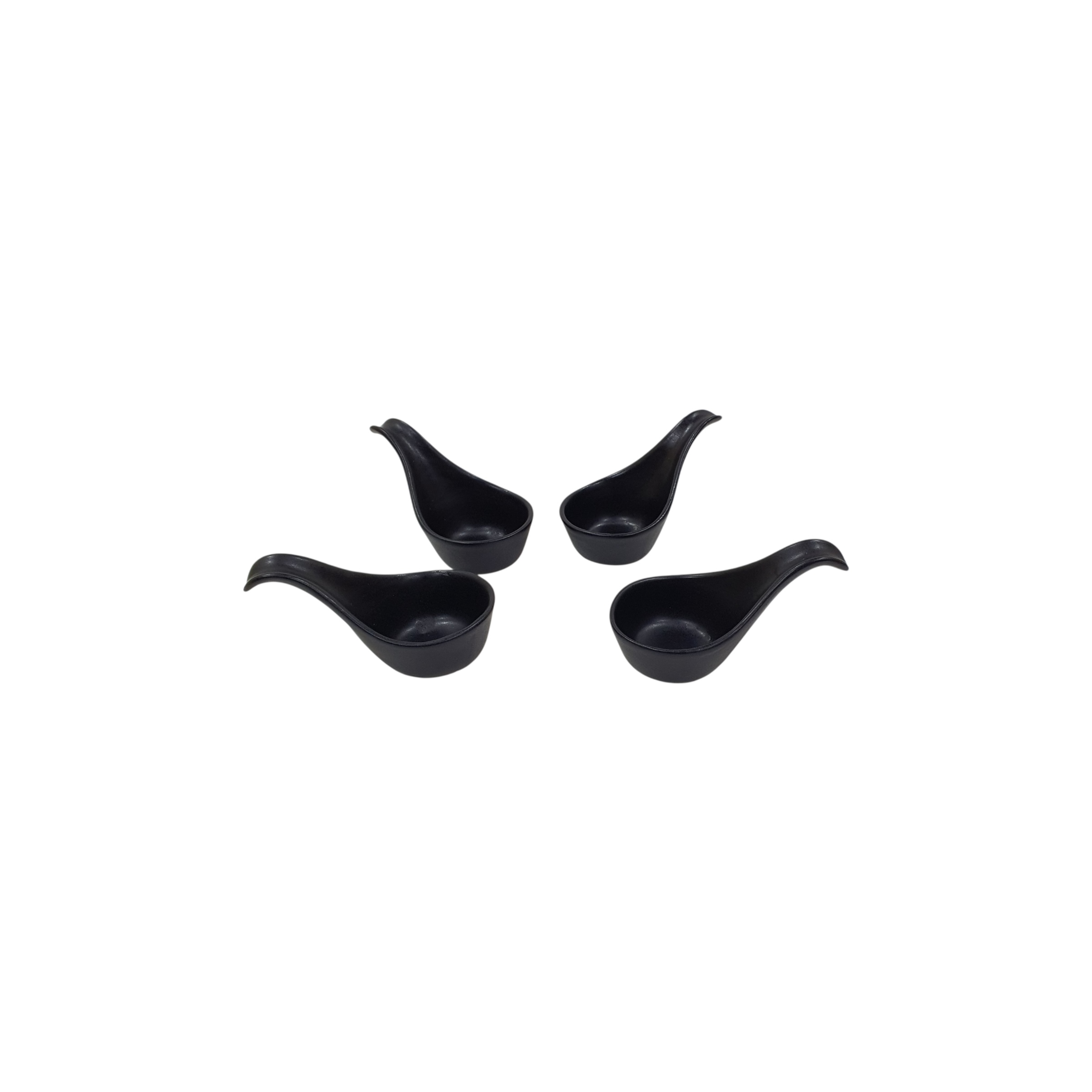 A 4-piece set of matte black canapé spoons designed for serving bite-sized hors d’oeuvres. Perfect for cocktail parties, grazing tables, and modern dining setups.
