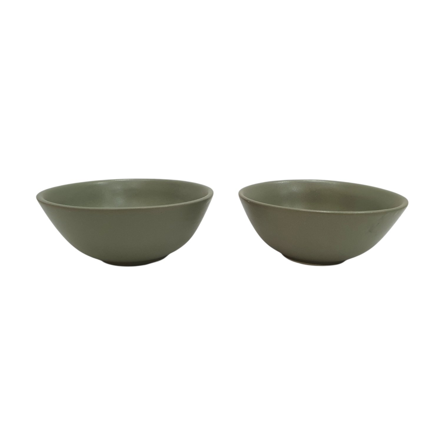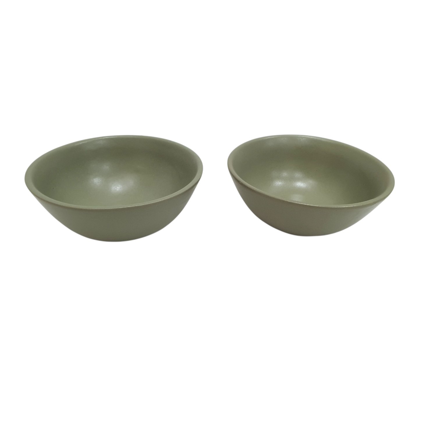 Set of two handcrafted ceramic soup bowls in matte olive green, exclusively designed by Leafbud. Perfect for soups, ramen, curries, cereals, snacks, and everyday comforting servings.