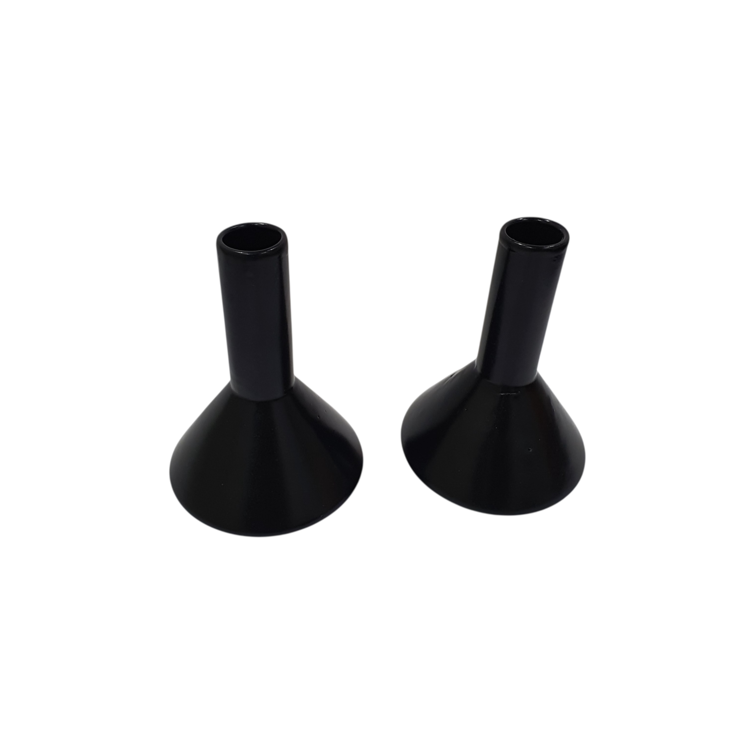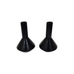 Set of two matt black vases with unique wide bases, exclusively designed by Leafbud. Durable ceramic construction, ideal for creative floral displays or elegant standalone accents.