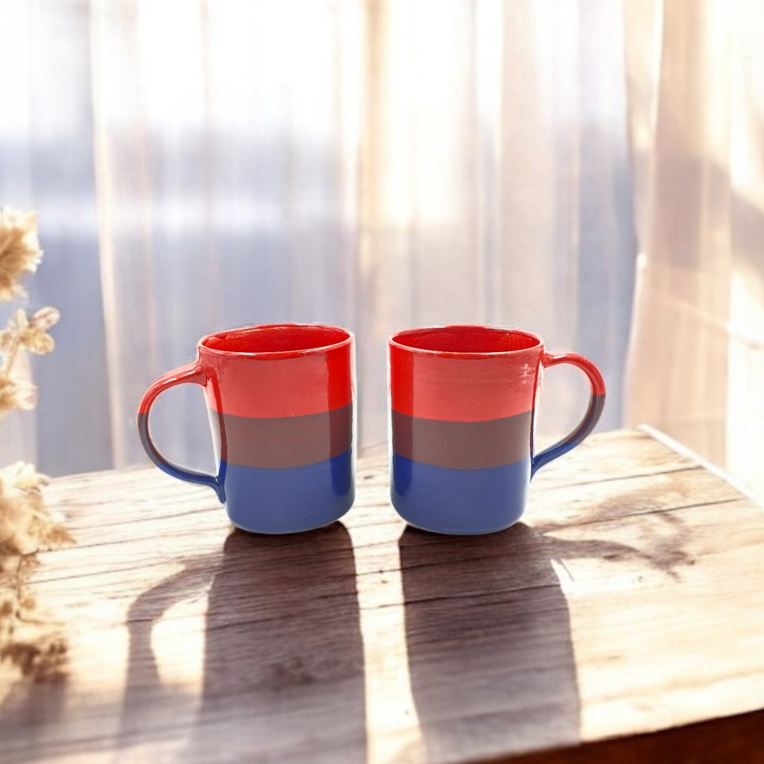 Expertly designed for Leafbud, each mug set features two distinct designs in vibrant rainbow-inspired colours. Crafted from high-quality ceramic for lasting durability, these mugs combine unique artistry and ergonomic form. Available as coordinated pairs, they elevate everyday sipping with bold hues and artisanal precision, perfect for home or gifting.