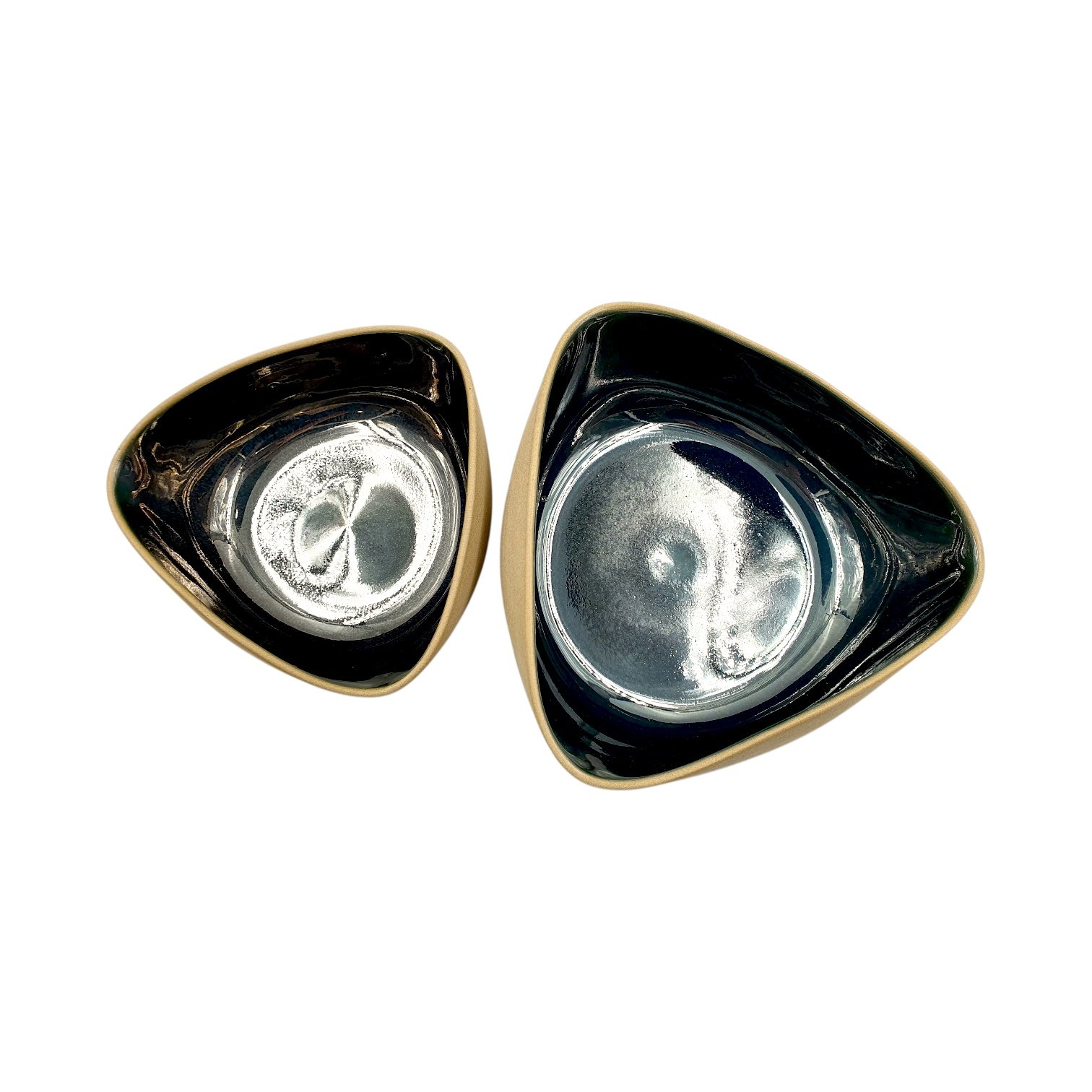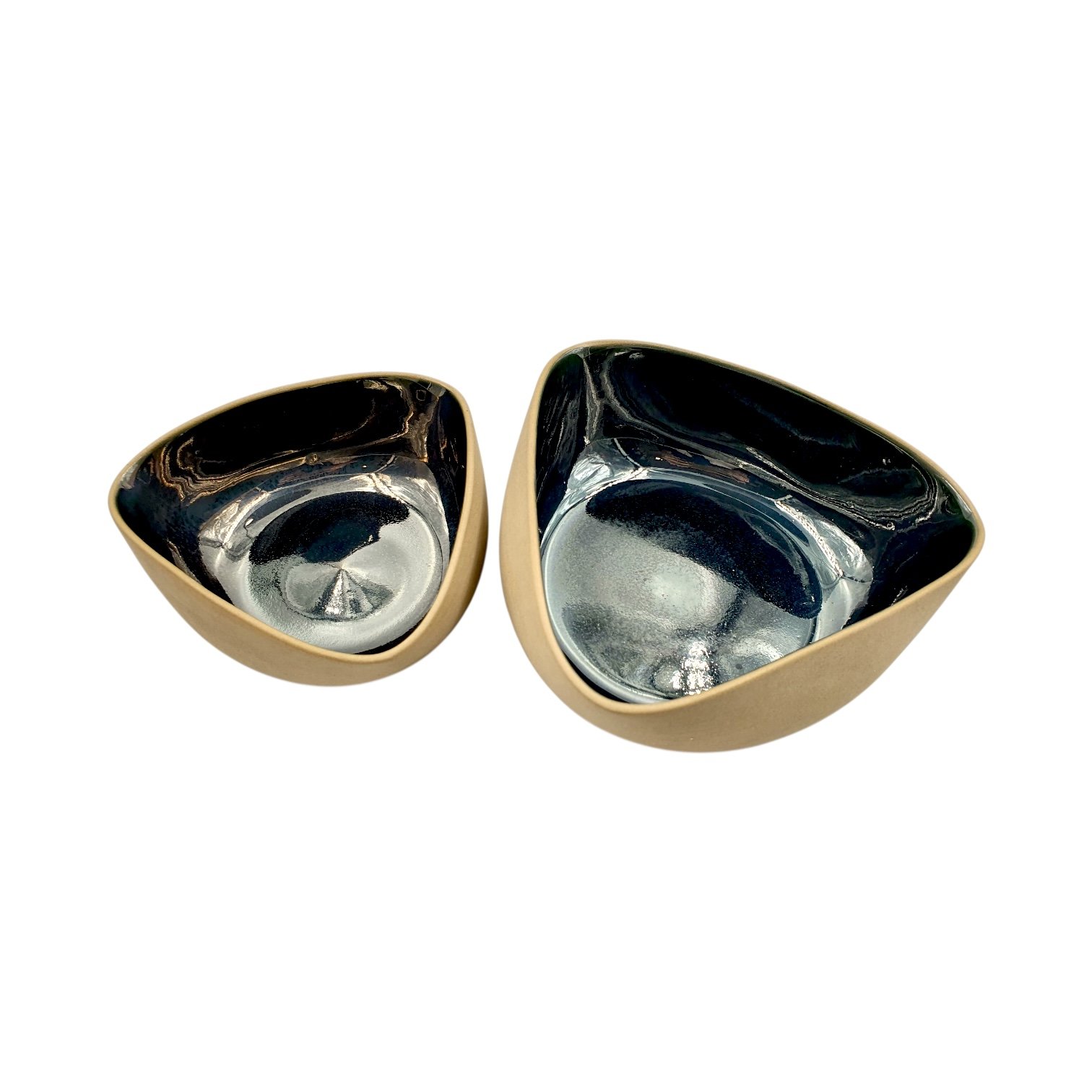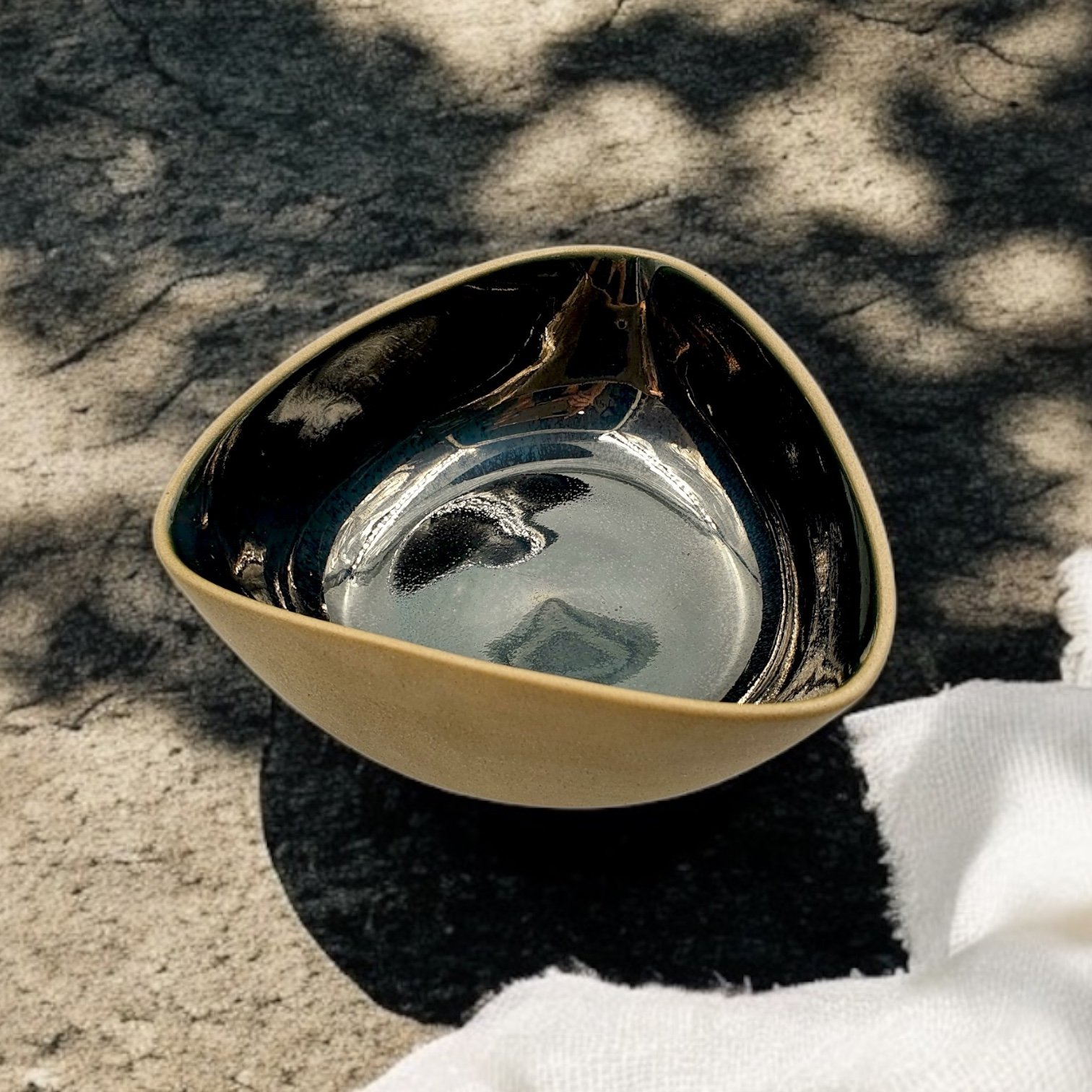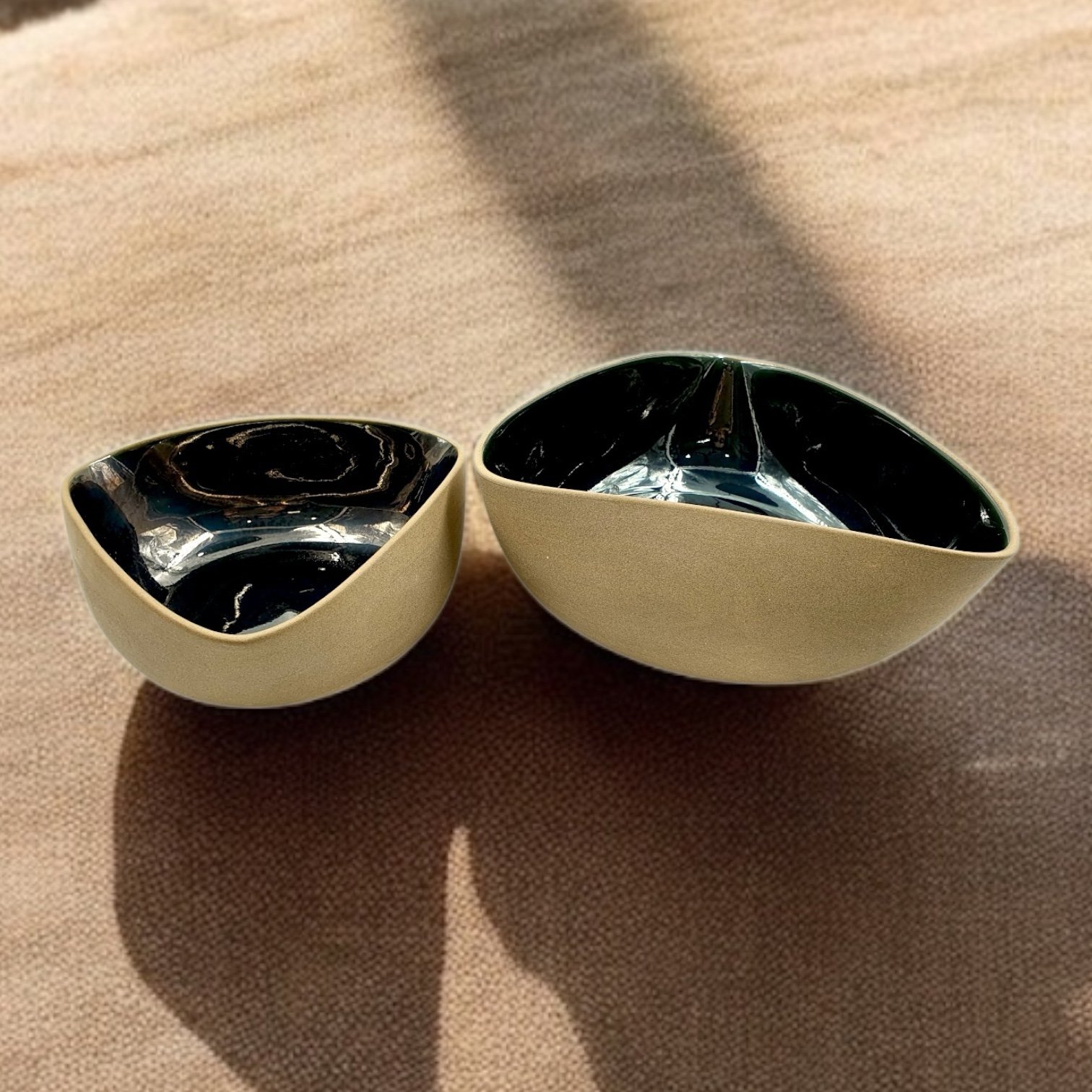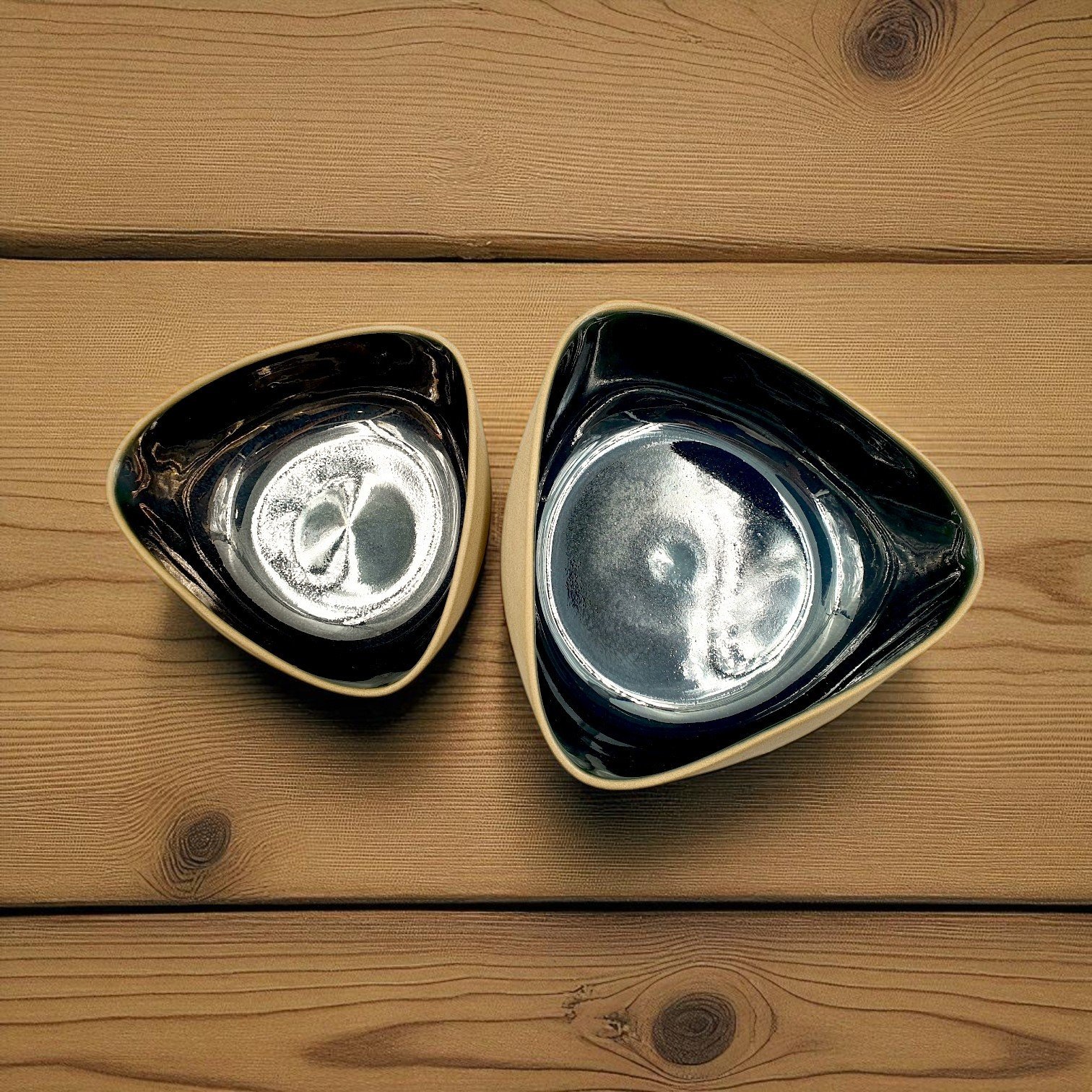The Leafbud Sapphire Glow Bowls are a striking set of two triangular-shaped serving bowls, designed to elevate any hosting experience. Their rich, glossy royal blue glaze — reminiscent of deep sapphires — is paired with a unique tripod base for a sculptural, modern aesthetic. Perfect for serving festive treats, adorning your table, or gifting in style, these bowls bring bold color and refined elegance to every occasion.