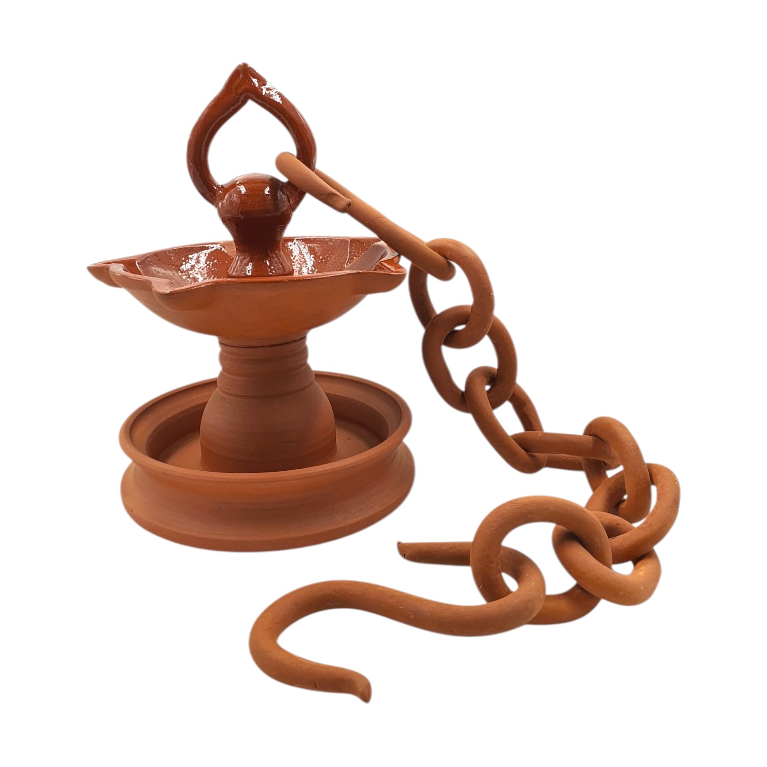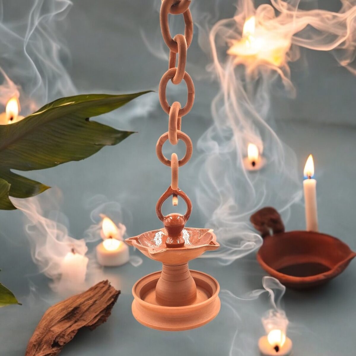 A 360-degree hanging diya that floats in light and form. The handcrafted terracotta chain is a marvel on its own, celebrating full-circle craftsmanship.