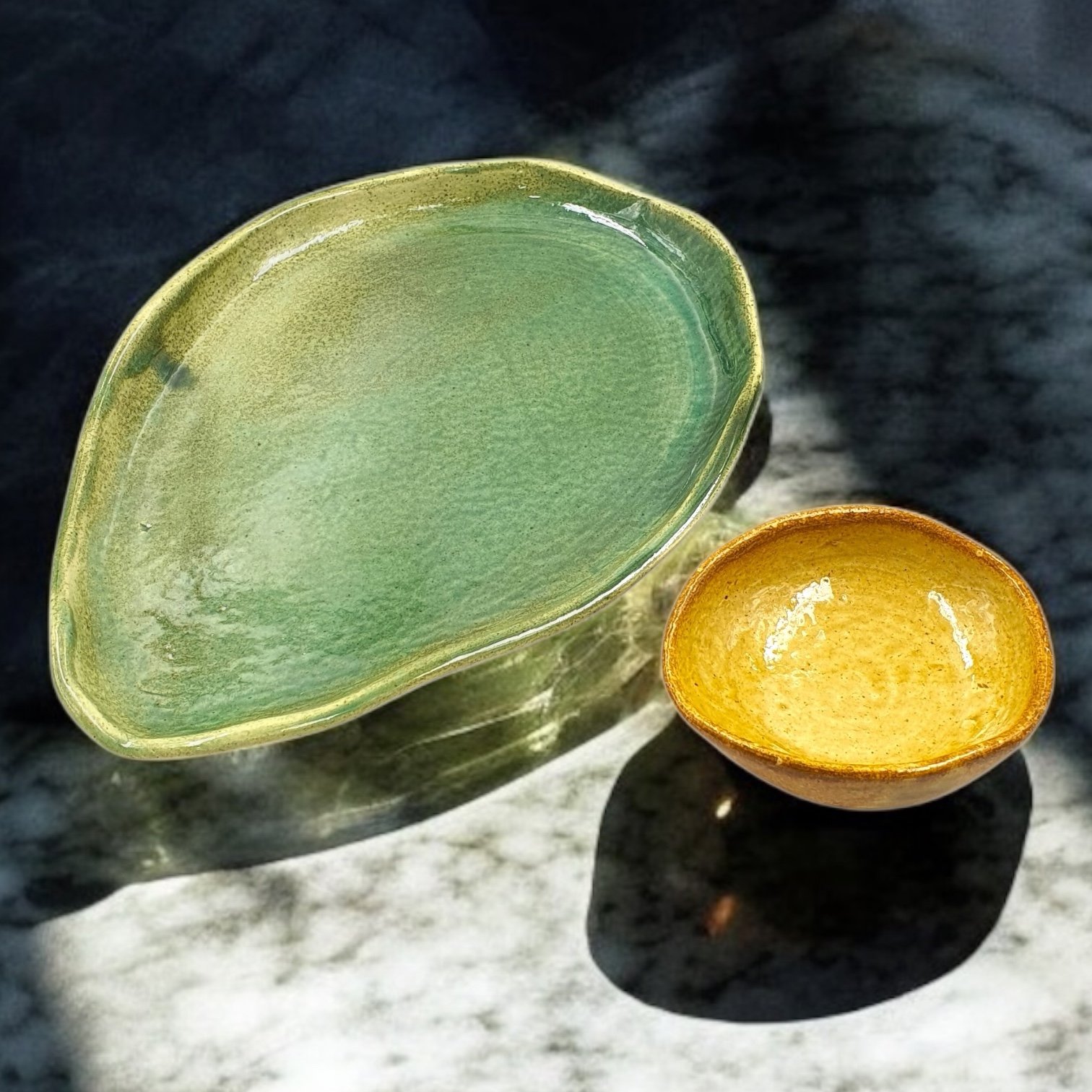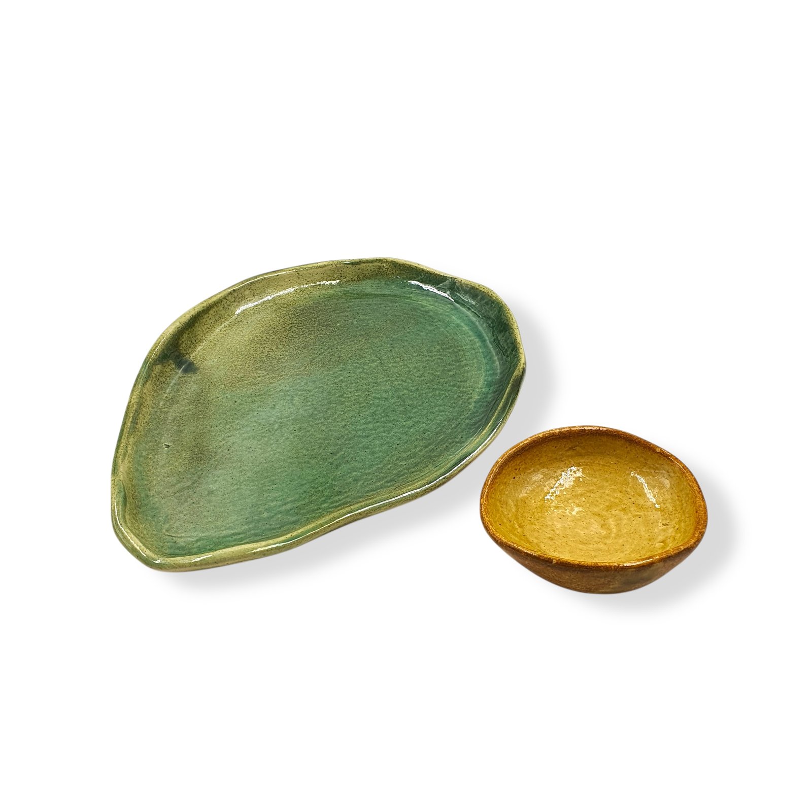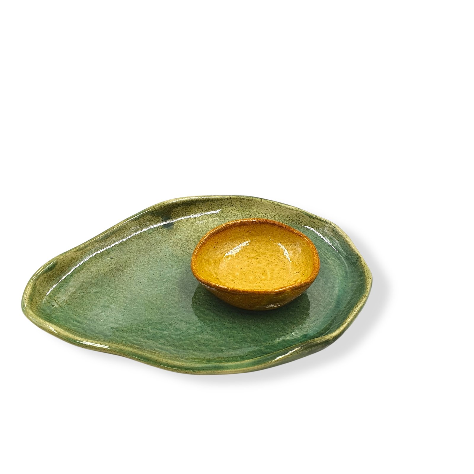 The Leafbud Solo Avo Platter Set, features one ceramic platter in vibrant green with a coordinating Mustard dip bowl styled as an avocado seed. Thoughtfully crafted to resemble a halved avocado from above, it’s perfect for stylishly serving snacks, appetizers, and dips at home or gatherings.