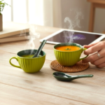 The Leafbud Verdant Soup Duo is an invitation to savor both style and comfort. Fluorescent green gleams across each ribbed mug, while a deep jungle green interior stirs the senses. Paired with spoons matching their vivid heart, every piece is a holdable work of art—crafted to elevate every soup moment into a celebration of color and form.