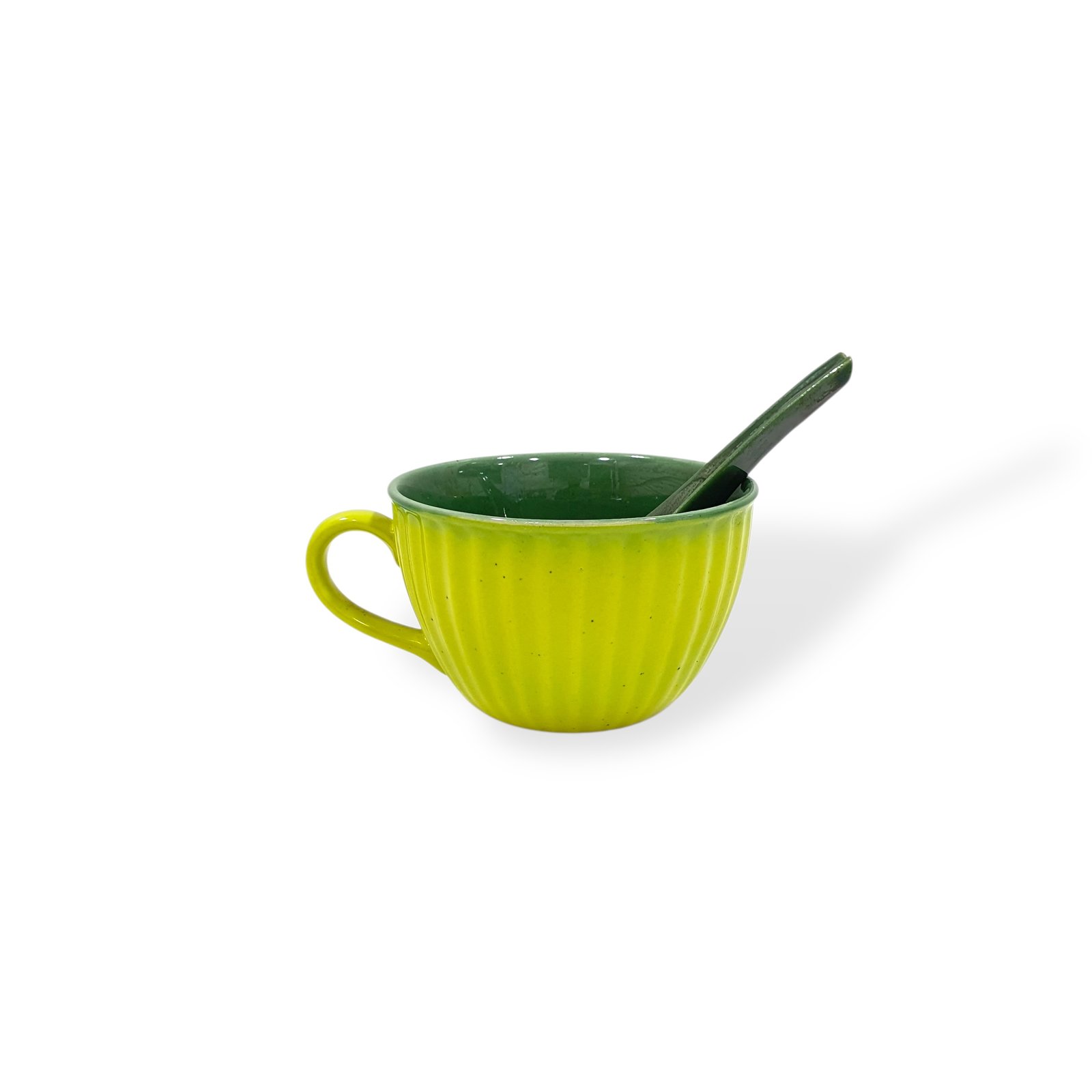 The Leafbud Verdant Soup Mug is an invitation to savor both style and comfort. Fluorescent green gleams across each ribbed mug, while a deep jungle green interior stirs the senses. Paired with spoons matching their vivid heart, every piece is a holdable work of art—crafted to elevate every soup moment into a celebration of color and form.